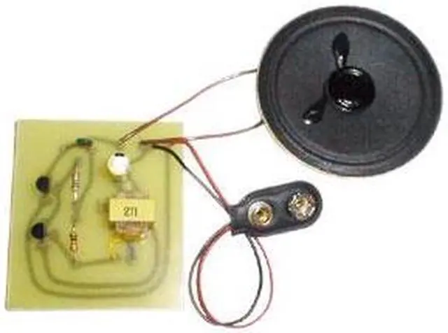 This is a strange and amusing kit! Just connect the battery and it happily emits a strange high pitched squeal once every minute. If you're not the one that hid the Secret Squealer it's pretty difficult to find because it only squeals for a second then it is quiet again until its 1 minute rest period is over! Size of board: 2? x 2.25?.