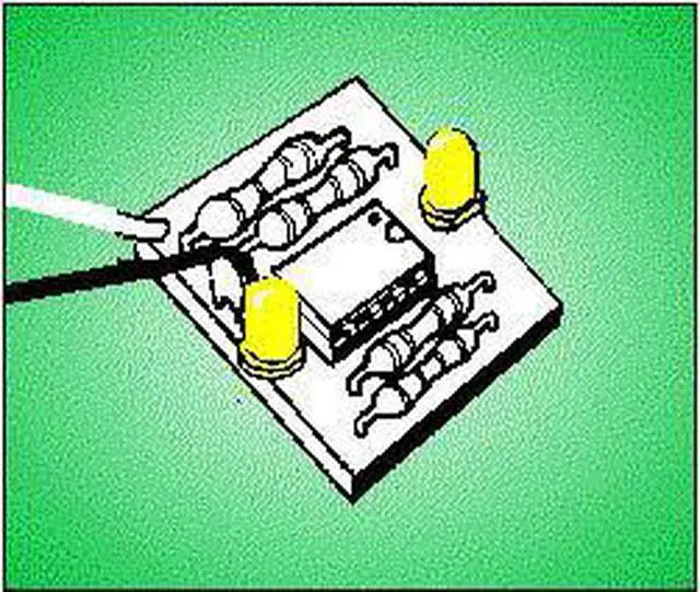These are just great for a simulated burglar alarm and to dress up kids' toys and probably other uses we haven't thought of. The LEDs flash alternately. The MB3 kit includes two yellow two red and two green LEDs so you can choose your own style.
