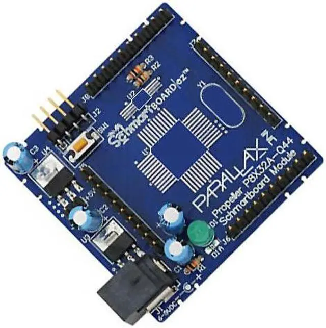 NOTE: This board does not include the Parallax Propeller Chip memory and the optional crystal. You hand solder these parts using SchmartBoard|ez technology which makes soldering easy and flawless(and some headers which are included). The Propeller chip makes it easy to rapidly develop embedded applications. Its eight processors (cogs) can operate simultaneously either independently or cooperatively sharing common resources through a central hub. The developer has full control over how and when each cog is employed; there is no compiler-driven or operating system-driven splitting of tasks among multiple cogs. A shared system clock keeps each cog on the same time reference allowing for true deterministic timing and synchronization. Two programming languages are available: the easy-to-learn high-level Spin and Propeller Assembly which can execute at up to 160 MIPS (20 MIPS per cog).