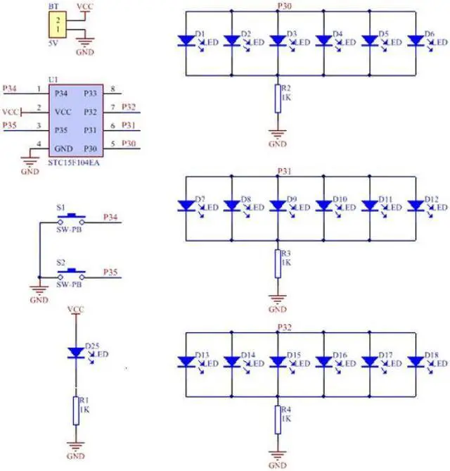 The circuit is based on MCU control. MCU control different vertical LED lighting so as to achieve the effect of windmill rotation. The speed of the windmill can be changed by press the buttons.