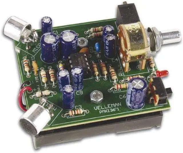 Stereo audio amplifier boosts sound 50 times. Great for thehearing impaired (e.g. when watching TV) as a gadget science project with volume control and on/off switch.