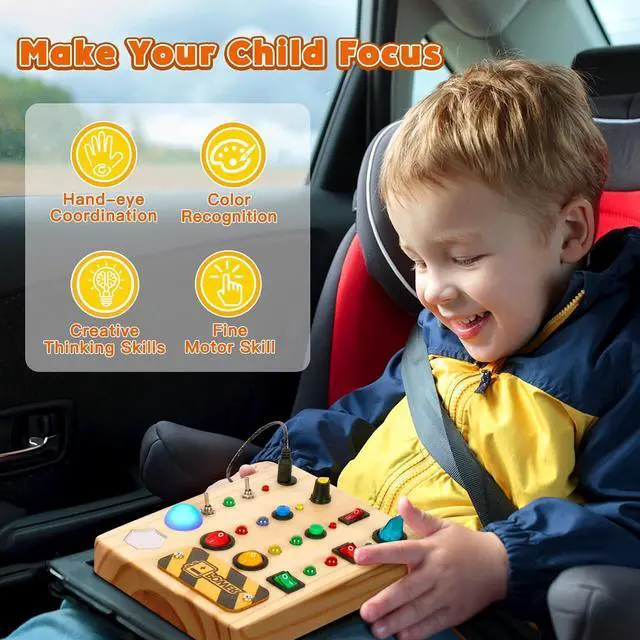 Exquisite Sensory ToyImproves your child's motor skills and problem solving skills. Entertainment for hours with endless buttons, wires and light combinations. This is a very interactive game and is recommended for kids from 1 to 6 years old