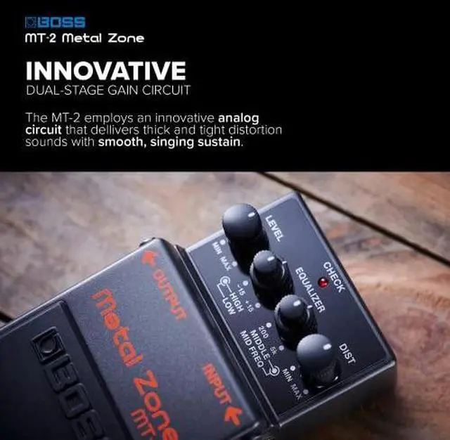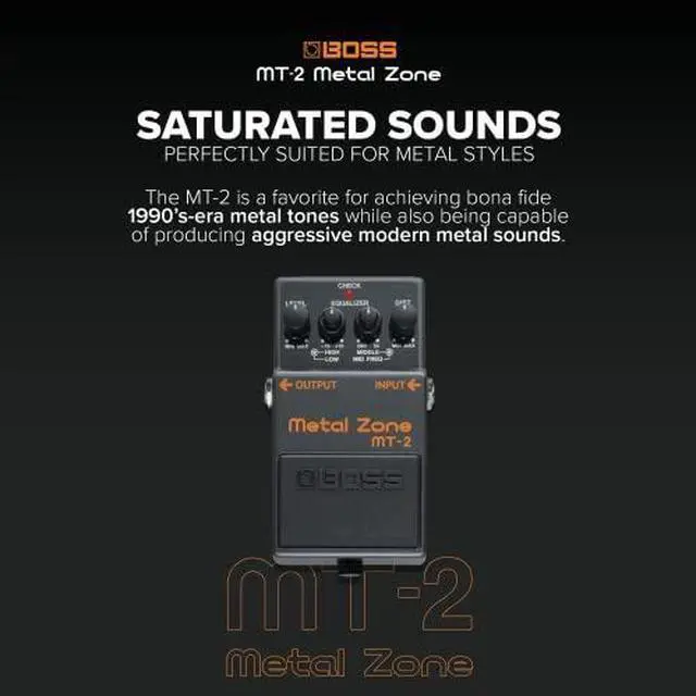 One of BOSS’ most popular pedals, this stompbox provides some of the most over-the-top, insane distortion tones in the world, with huge mids and lows and an ultra-saturated sound. 3-Band EQ with semi-parametric mid control offers a wide range of extreme distortion textures.