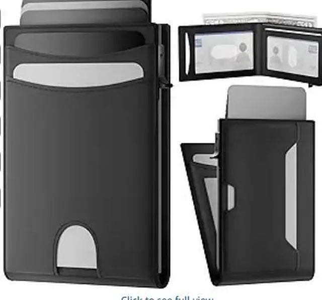 Wallet for Men: Pop Up Card Case, RFID Blocking, Slim, Minimalist, Genuine Leather, Front Pocket, Smart, Thin, Compact, Magnetic Flap Closure - 2 ID Windows, Up to 12 Cards & 15 Bills (Black)