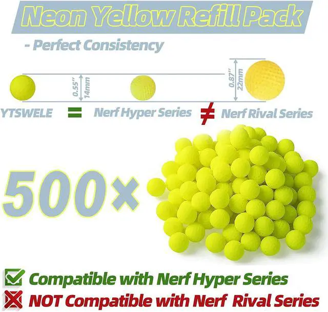 Package Included 500 Neon yellow high-impact rounds for Nerf Hyper. larger quantity with lower price, a good way to experience more fun.