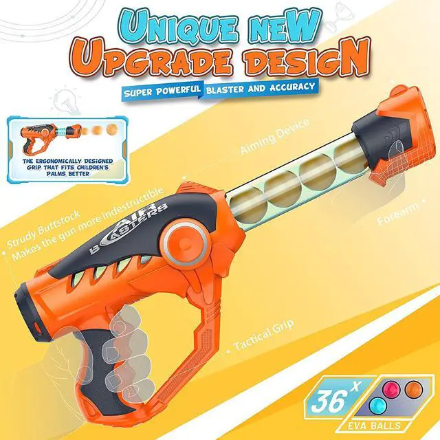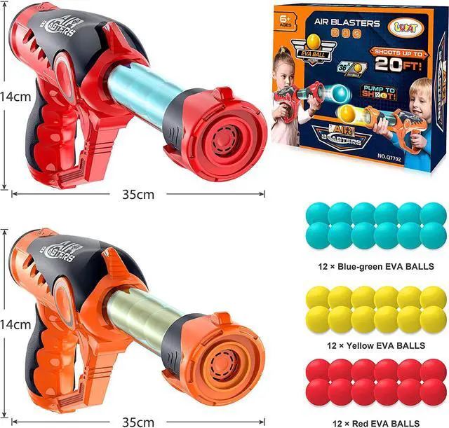 YEAR-ROUND FUN! RUN, PUMP, SHOOTING! - Playing chasing & shooting games can help our children practice their reaction capacity which is good for forming prompt and responsive thinking. Get kids away from screen time and encourage active, indoor or outdoor play. The Eafzv shooting game set includes everything you need for a fun-filled day! 2 x Shooting Toys (Streamlined gun body full of technological sense), 36 Foam EVA Balls (12 x Red, 12 x Green, and 12 x Yellow).