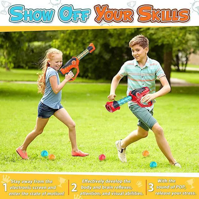PROMOTES STEM LEARNING IN GAMES - Raising smarter, healthier, happier kids. Get kids interested in STEM subjects. Shooting Air Toys demonstrates force, trajectory, and the power of science. At the same time it can provide kids with exercise opportunities, effectively promote visual development, hand-eye coordination ability. It's a great birthday gift idea for Kids age 6 7 8 9 10 11 12+. Ideal party favor and all kinds of the festival (Christmas, Halloween, Thanksgiving, New Year).