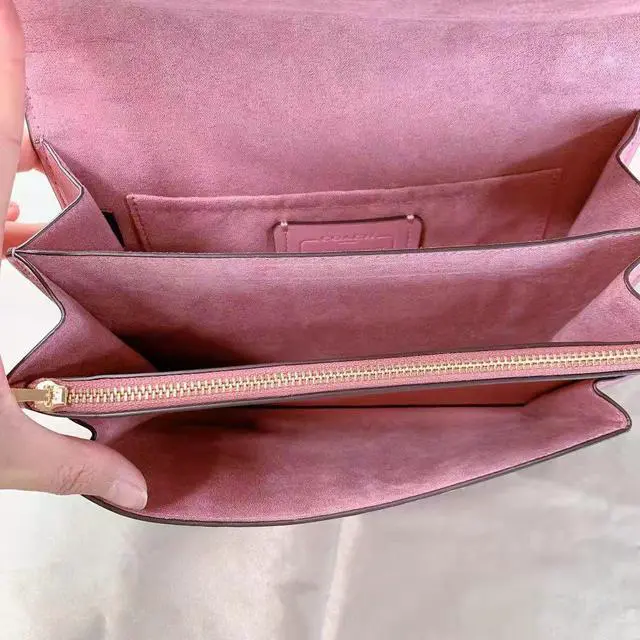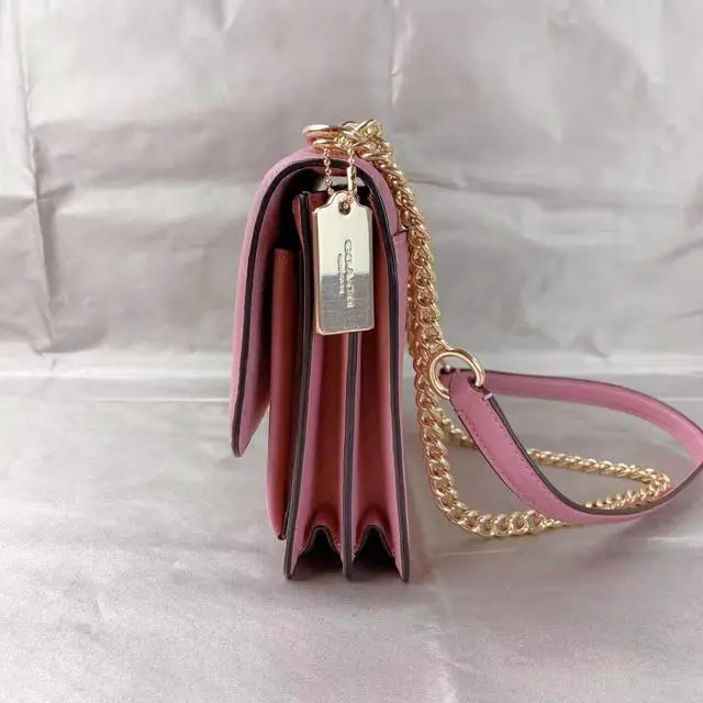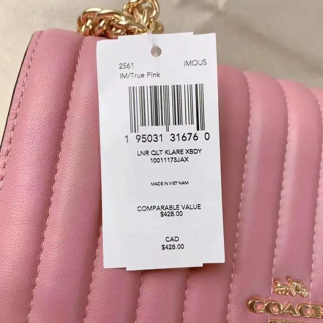 COACH 2561 KLARE CROSSBODY WITH LINEAR QUILTING IN TRUE PINK Nappa leather and smooth leather| Inside zip and multifunction pockets| Snap closure, fabric lining| Outside slip pocket| Strap with 22" drop doubles up for three ways to wear: short or long on the shoulder or crossbody style| 8 1/2" (L) x 6 1/4" (H) x 2 3/4" (W) Style No.