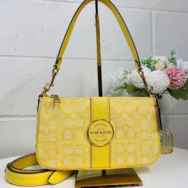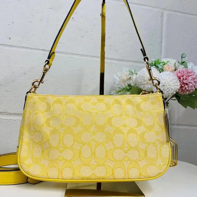 • Coach C8306 Lonnie Baguette In Signature Jacquard In Gold/Retro Yellow
