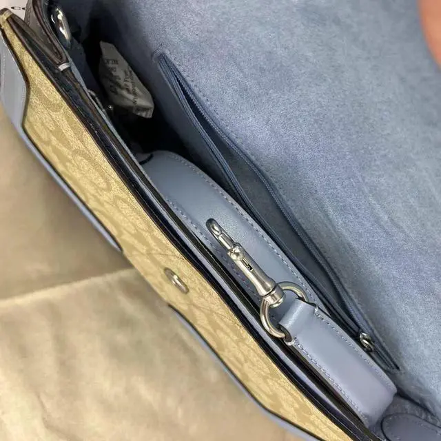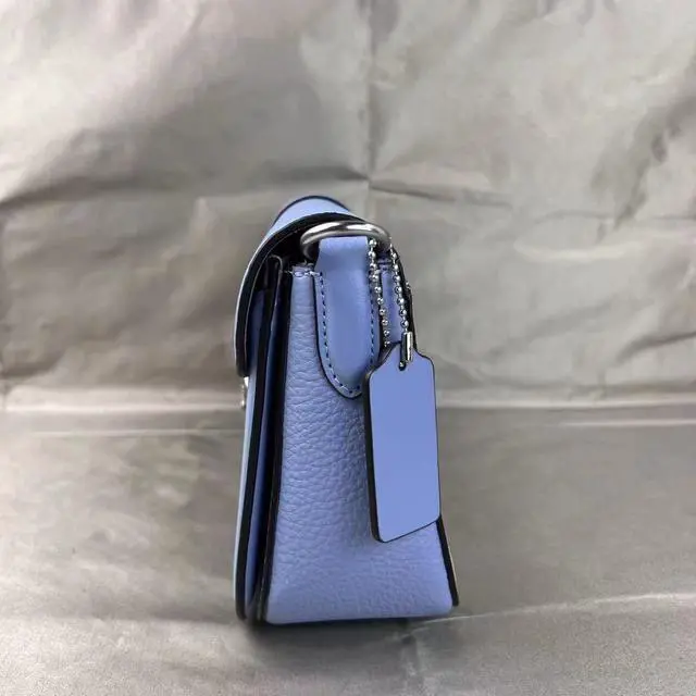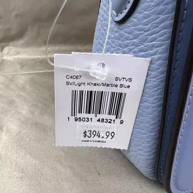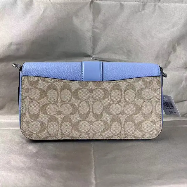 Coach C4067 Georgie Shoulder Bag In Signature Canvas In Light Khaki/Marble Blue Signature coated canvas, refined pebble leather and smooth leather Inside zip pocket Snap closure, fabric lining Detachable handle with 9" drop Outside open pocket Detachable strap with 22" drop for shoulder or crossbody wear 10 3/4" (L) x 5 1/2" (H) x 2 3/4" (W) Style No.