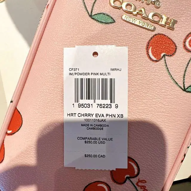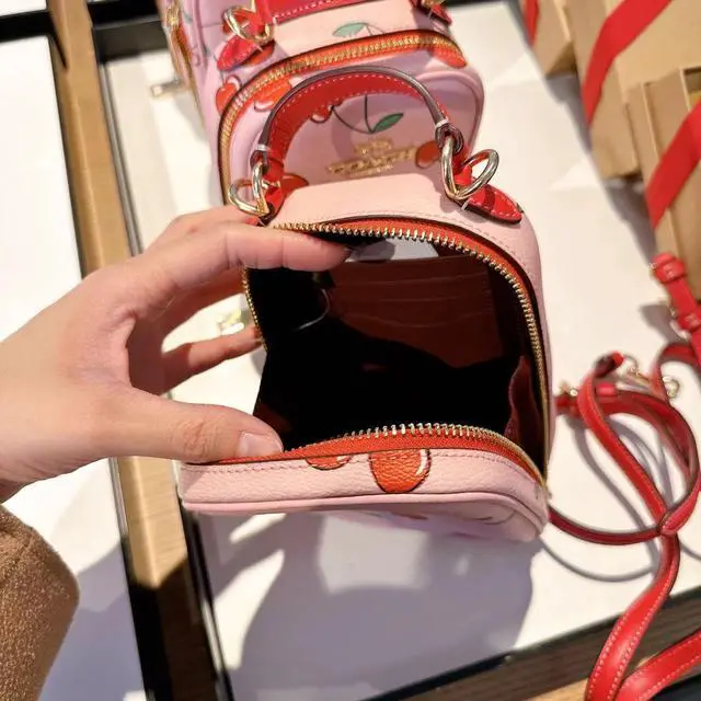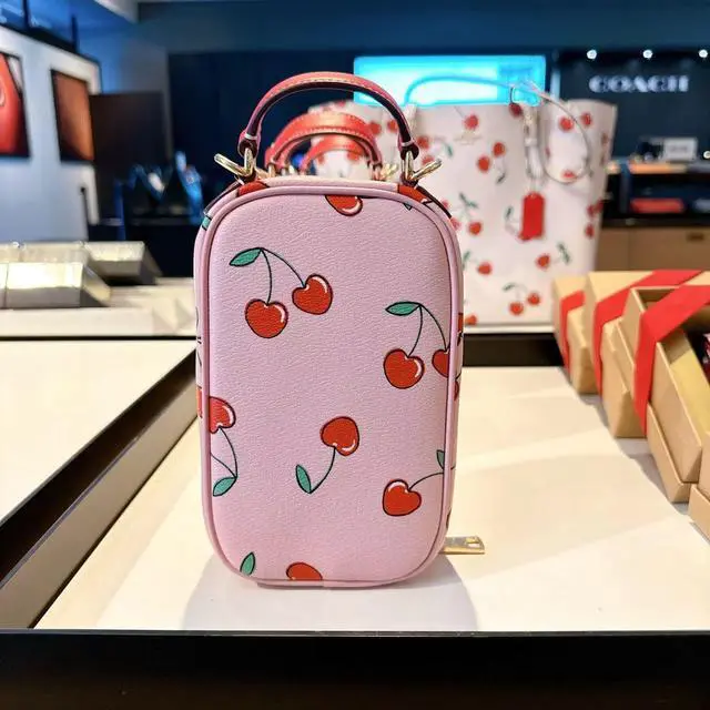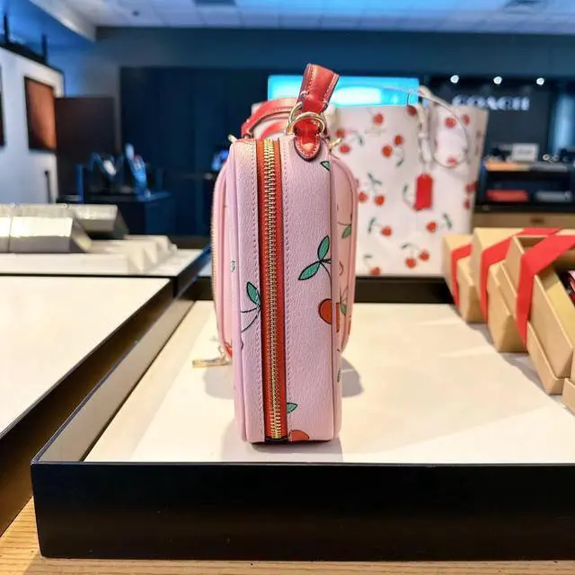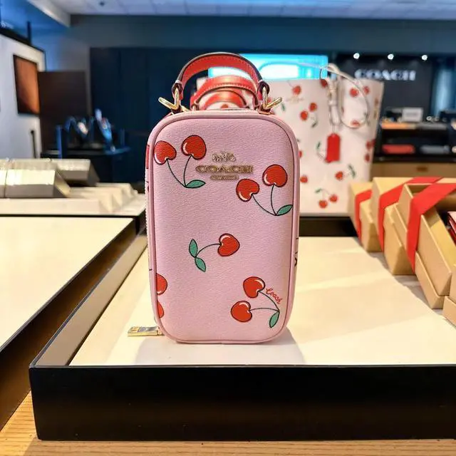 Coach CF371 Eva Phone Crossbody With Heart Cherry Print In Gold/Powder Pink Multi