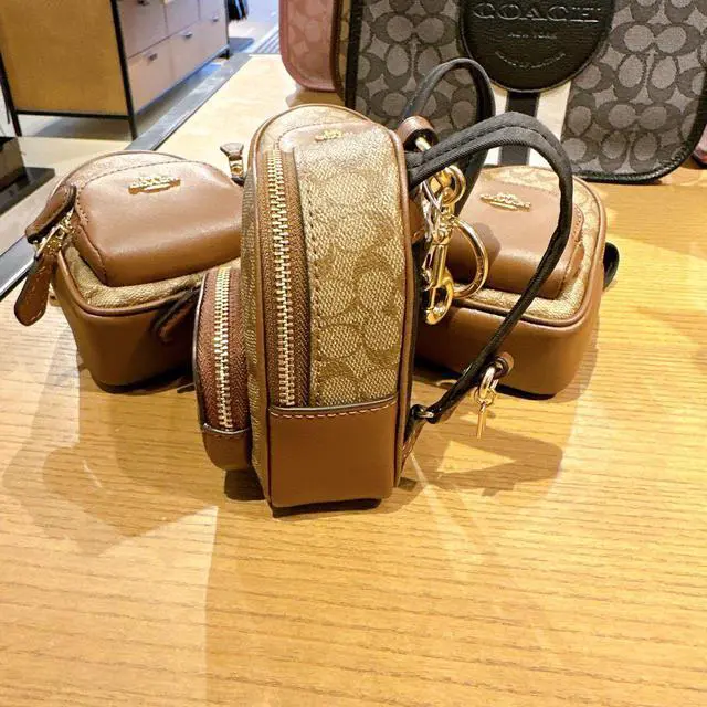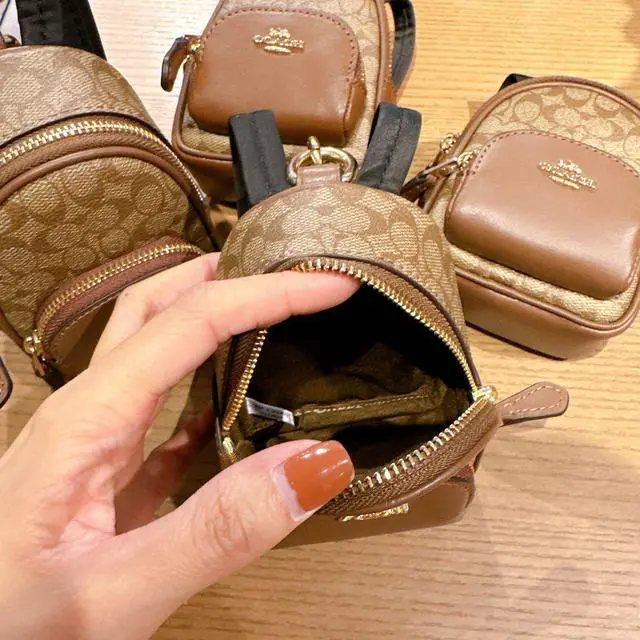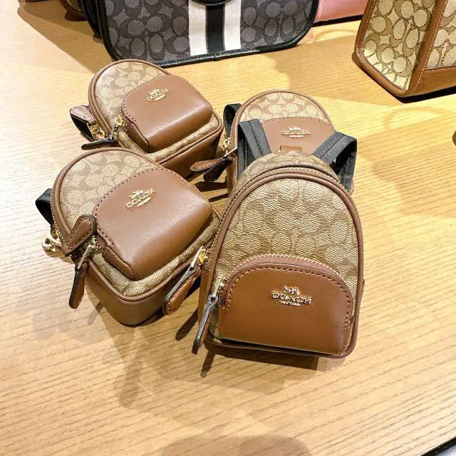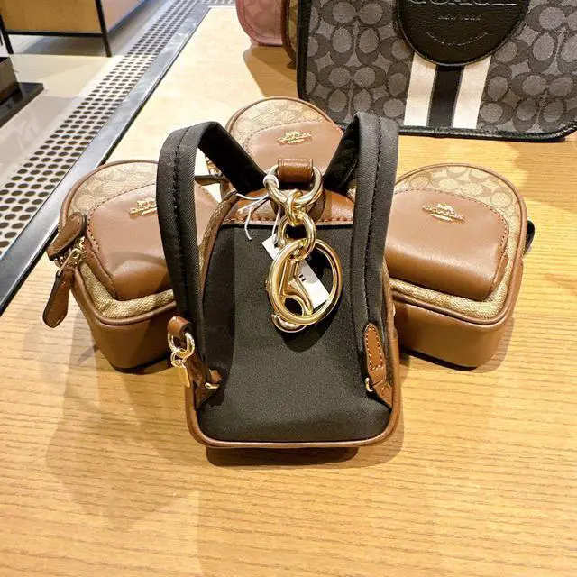 Coach C7803 Mini Court Backpack Bag Charm In Signature Canvas IN Khaki Saddle