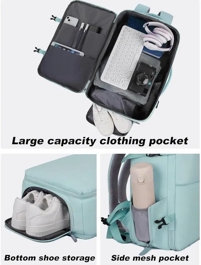 Stay organized on the go with this 40L Expandable Travel Backpack, crafted from durable waterproof polyester and designed for school, office, or travel. Measuring 46 x 32 x 23 cm, it fits 17.3" laptops and features a USB charging port, wet/dry compartment, shoe pocket, and hidden anti-theft back panel. The expandable main section opens 180° for easy packing and airport checks. Padded shoulder straps and breathable mesh ensure comfort, while a rear luggage sleeve adds travel convenience. The package includes 1 backpack.