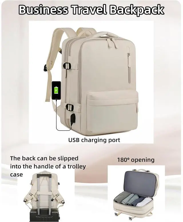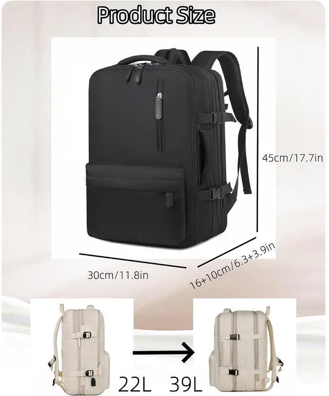 Stay organized on the go with this 40L Expandable Travel Backpack, crafted from durable waterproof polyester and designed for school, office, or travel. Measuring 46 x 32 x 23 cm, it fits 17.3" laptops and features a USB charging port, wet/dry compartment, shoe pocket, and hidden anti-theft back panel. The expandable main section opens 180° for easy packing and airport checks. Padded shoulder straps and breathable mesh ensure comfort, while a rear luggage sleeve adds travel convenience. The package includes 1 backpack.