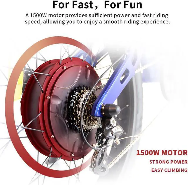 48V 1500W high-speed brushless motor, provids more than enough to power your daily commute, a cruise on the mountain, or a meander along your favorite trail Maximum speed can reach 30 mph