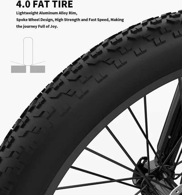 26x 3.0 inch Fat Tire. It can adapt to snow, sand and other complex topography.