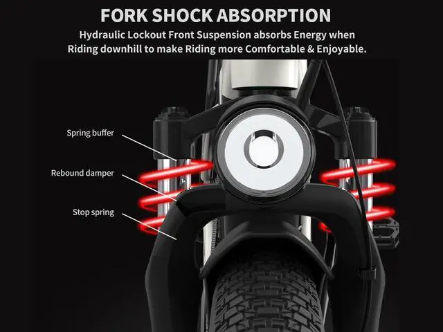 Suspension System &7-Speed Gear--With Aluminum Alloy Suspension Fork, this ebike will reduce bumps. Shimano 7-speed gears gives you more speed options.