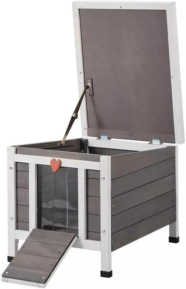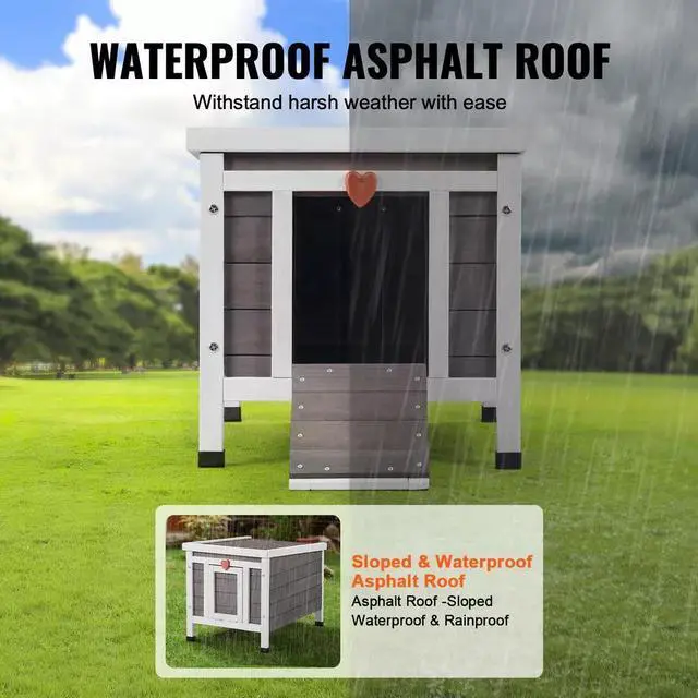 1. Made from high-quality cedar wood and coated with water-based paint, this outdoor cat house offers multi-layer protection, which is corrosion-proof. Four waterproof foot pads enhance waterproof features. Ensure your cat's safety and health!