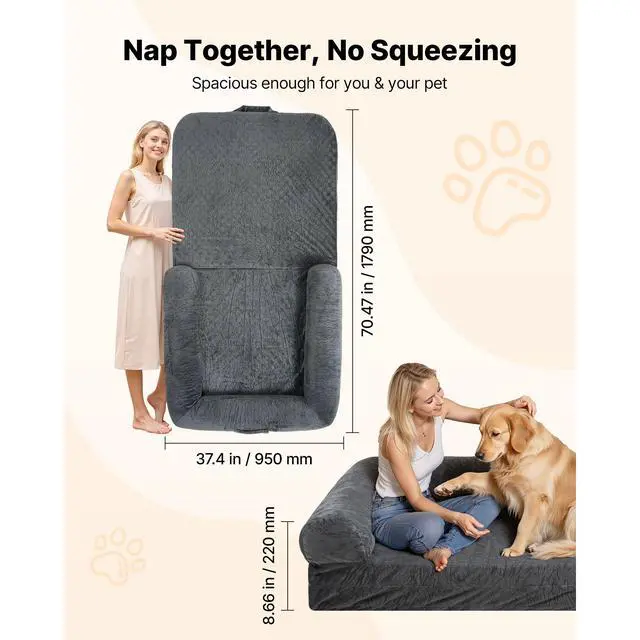 Human Dog Bed, 70.47 x 37.4 x 9.45 inch Orthopedic Memory Foam Human Sized Dog Bed, Humans Pet Beds with Side Pocket, Handle & Zipper, Removable Machine-Washable Dogs Beds for Humans, Dark Gray