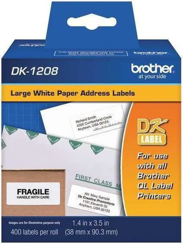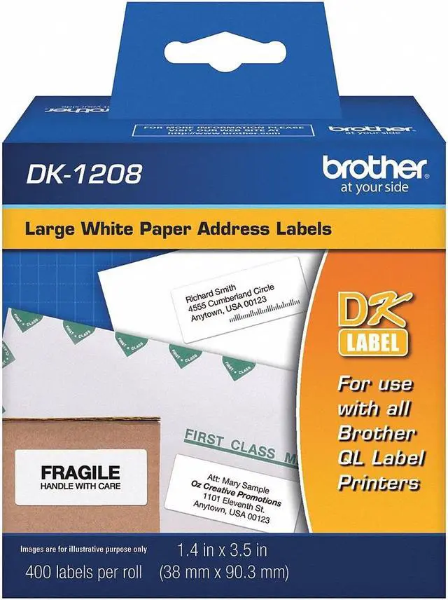 BROTHER DK1208 Printer Label, 1-3/8" W, 3-1/2" L