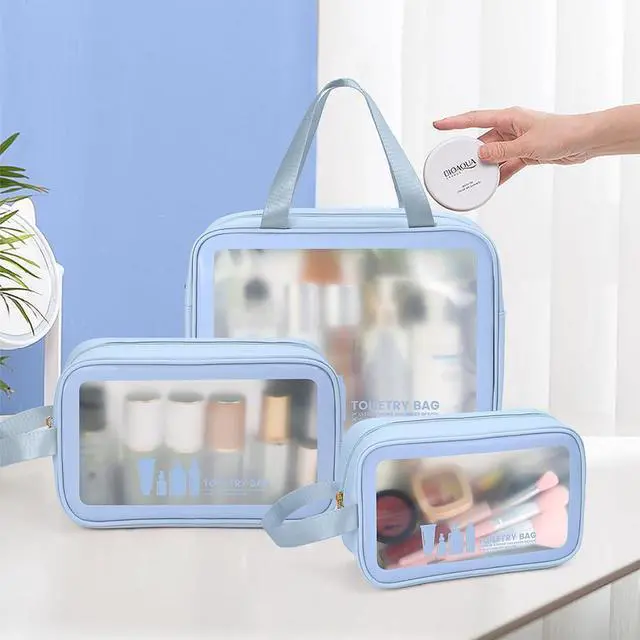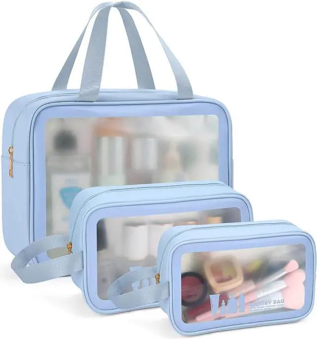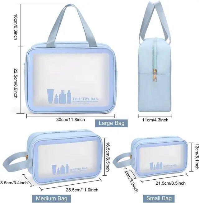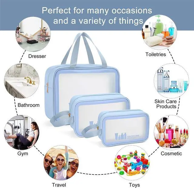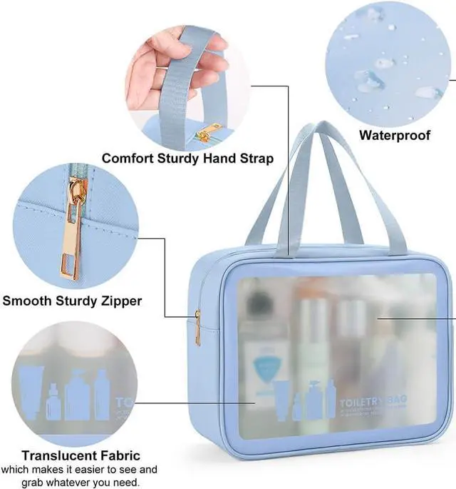 SUPERIOR MATERIAL: These travel toiletry bags are made of PU material, eco-friendly, Sturdy, and waterproof. Design with translucent material and a large opening zipper, allows you to see what is stored and where it is and making it convenient to pack and save time to find what you need