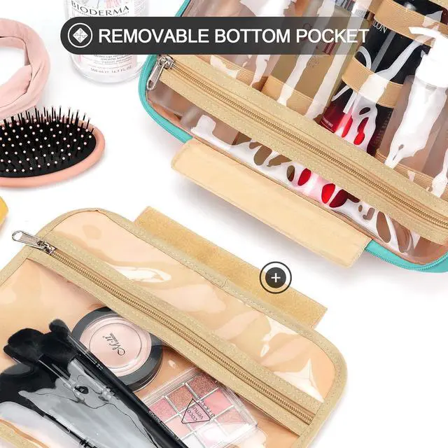 EASY TO USE - When it is open and hanging, all the transparent pockets inside will be lined up in front of you, you can quickly take out the items you need without making a mess inside. The bottom bag is detachable, you can remove it if its too long for you and use it as a separate bag. The trolley strap on the back can fix on the trolley case, you also can put it in the suitcase to free your hands.