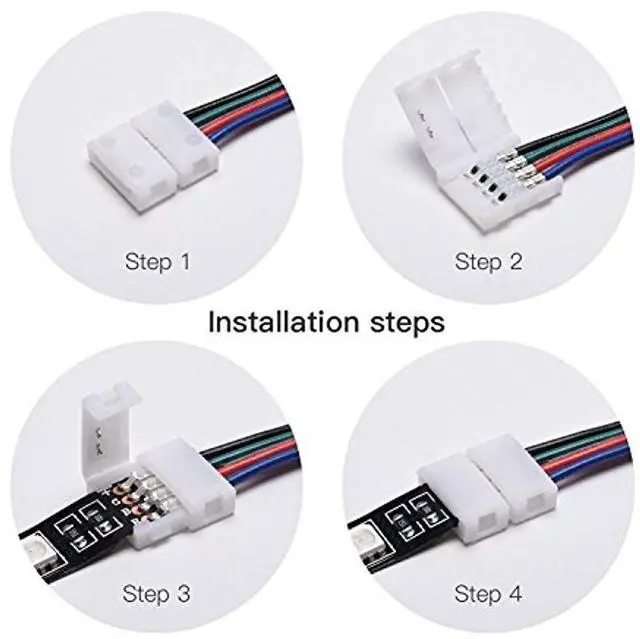 Application--RGB LED Strip connecto kit fits 5050/3528 RGB LED chips with 10mm 4pin wide strips.