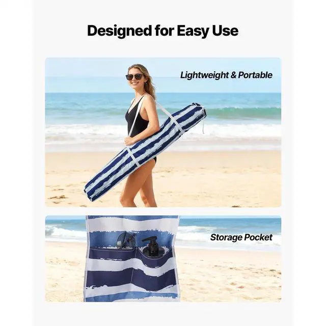 Wind Resistance: Equipped with a sturdy fiberglass frame, a screw-in main pole, sandbags, and ground stakes, this large beach cabana stays firmly anchored to the sand. It resists collapsing or being blown away, even under light sea breezes