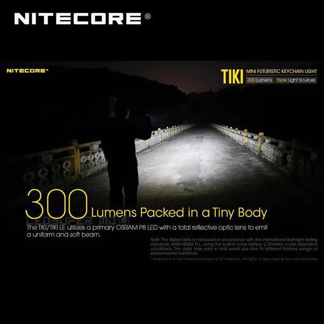 The TIKI/TIKI LE utilizes a primary OSRAM P8 LED with a total reflective optic lens to emit a uniform and soft beam of 300 lumens. With a transparent and frosted body constructed from durable PC (V0) materials which are commonly used in aerospace and electronics industries, the TIKI/TIKI LE ensures a comfortable and steady grip and serves as an ultra mini and lightweight futuristic gadget, while the head is constructed with a superior heat dissipation capability. (TIKI: Stainless Steel; TIKI LE: Aluminum Alloy)