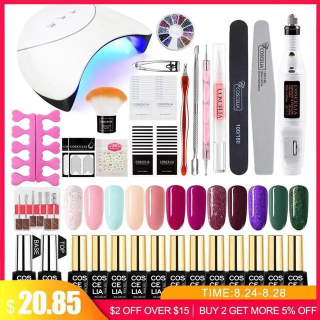 LED Lamp For Nail Gel Nail Polish Kit Manicure Machine Art Tools Set Top Base Varnish Semi Permanant Lamp