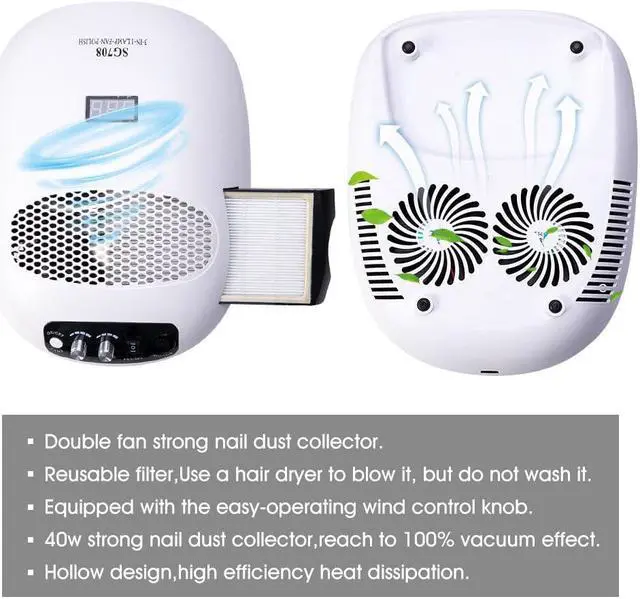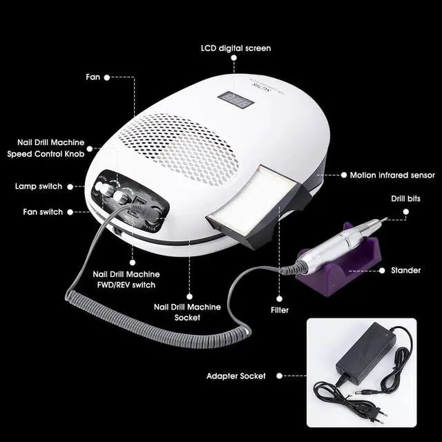 Professional Nail Drill: The 3-1 Dust Collector included a professional grade nail drill with heat dissipation technology, very low noise and vibration, and 30,000 rpm rotary speed.