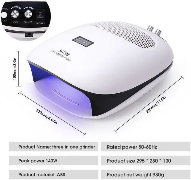 140W Powerful 3 in 1 Manicure and Pedicure Machine Nail Dust Vacuum Cleaner & UV lamp for Nail Gel & Nail Drill Manicure Machine