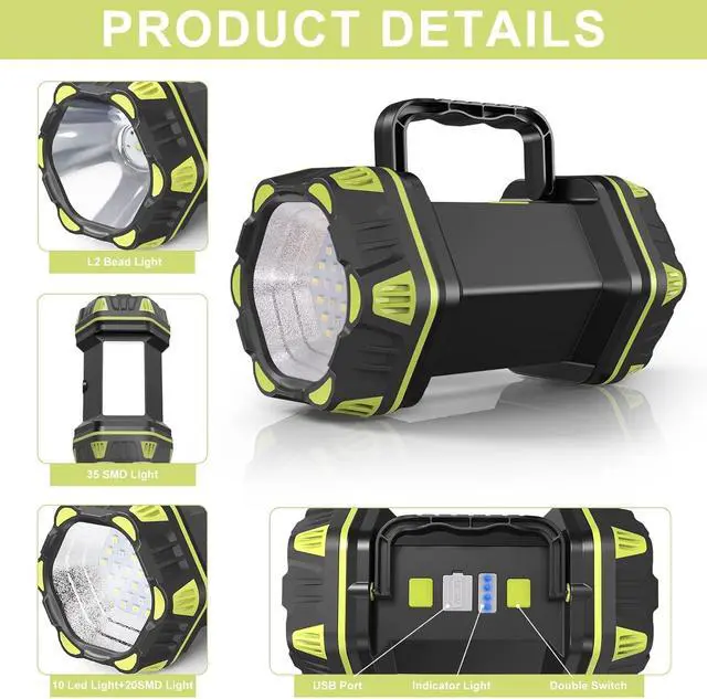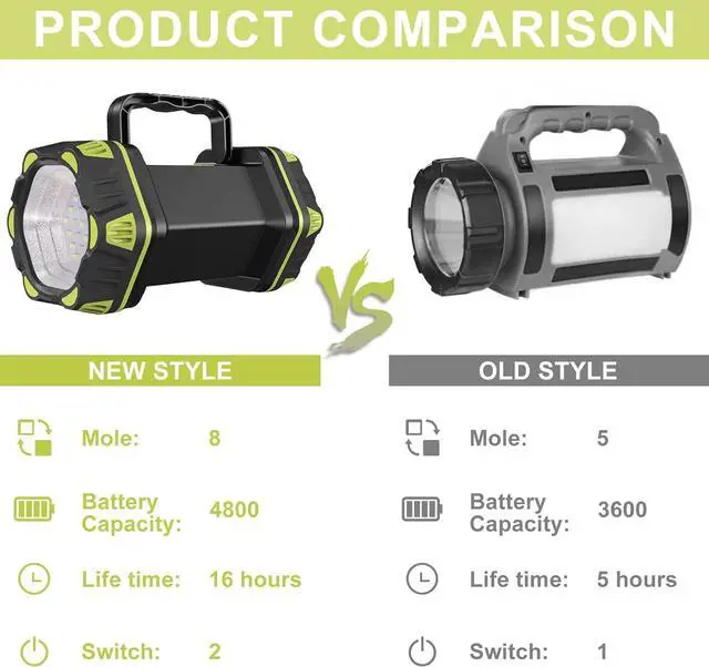 4800 Capacity Power BankThe flashlight lantern with USB port has a built-in 4800 capacity rechargeable battery. It can be fully charged in 4 hours, and it can work continuously for 16 hours outdoors.