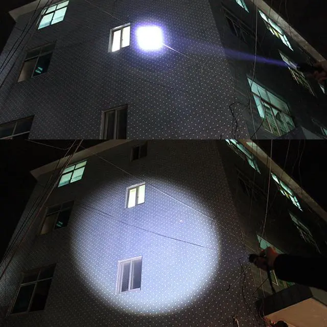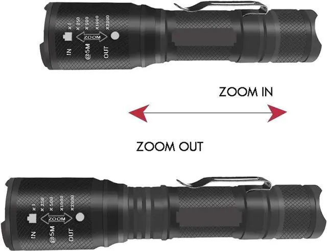 5 Mode: High, Middle, Low, Strobe & SOS / Zoom in & out Powered By: 1 x 18650 Rechargeable (not included) or 3 x AAA (not included) Case material: aircraft-grade aluminum Lighting Distance: > 300 meters Super Bright, blinding effect