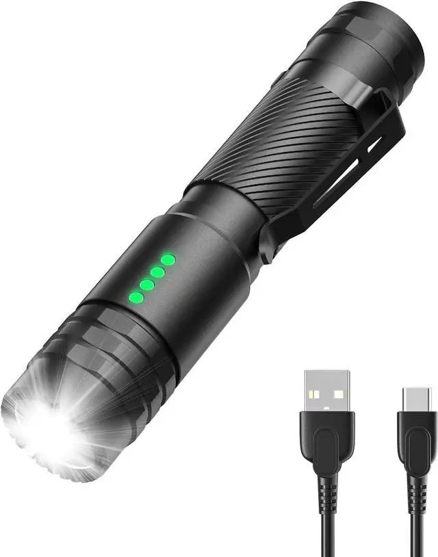 Rechargeable USB-C: This USB charging port flashlight can easily charge various USB devices. The included indicator light lets you know the charging status, and turns green when fully charged. In addition, the four indicator lights on the flashlight help to clearly understand the flashlight power (25%, 50%, 75%, 100%), ensuring that you clearly understand the battery status. The low-brightness mode can be used continuously for 30 hours, saving you the trouble of frequent charging.