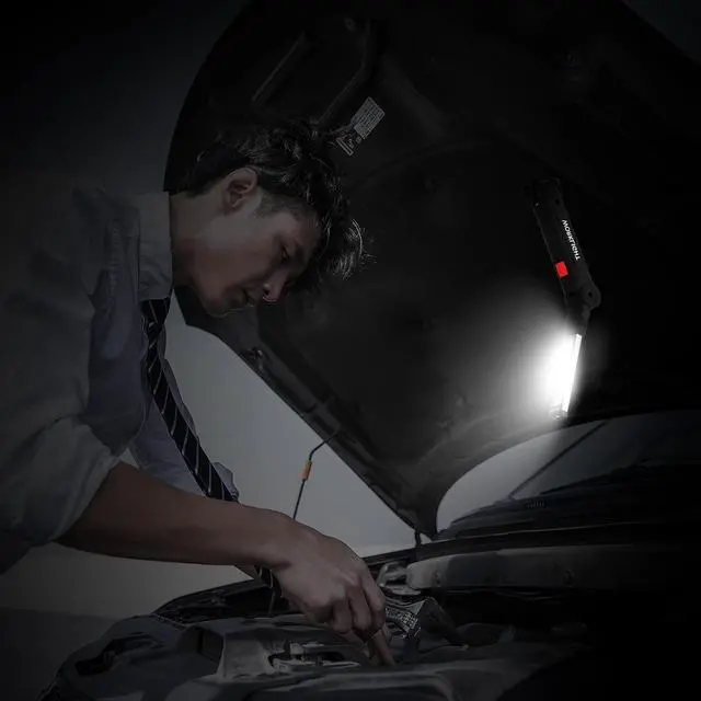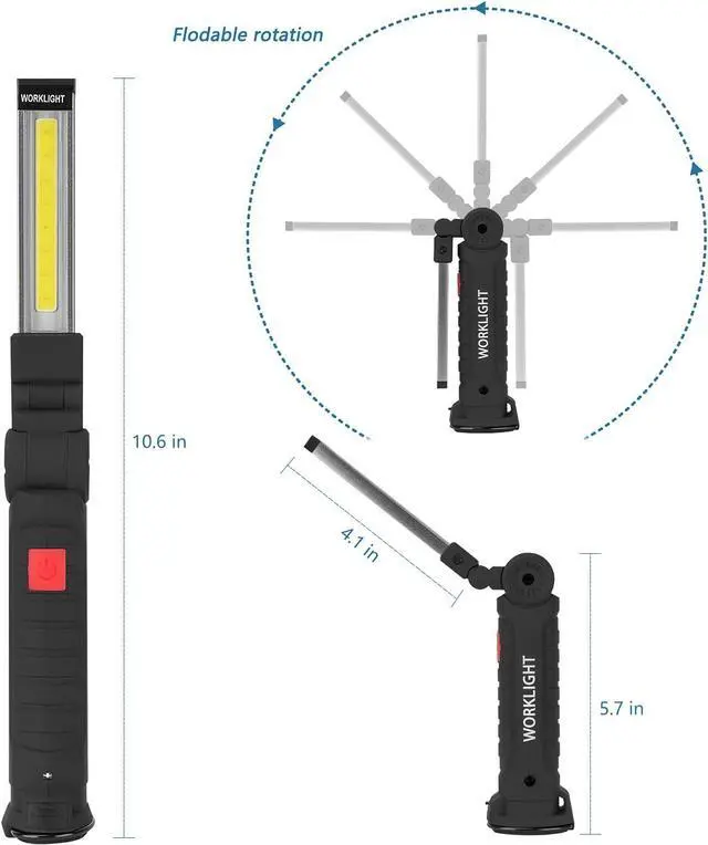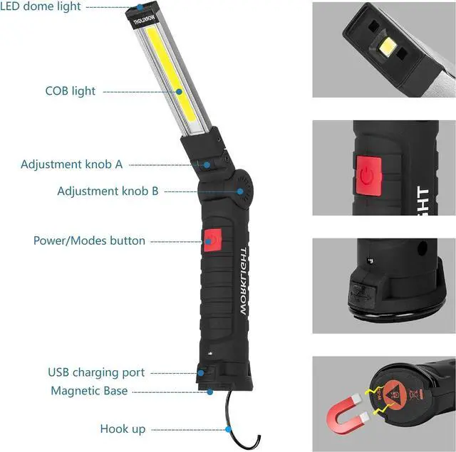 Rechargeable magnetic work light: This COB LED worklight built-in rechargeable battery, rechargeable by USB port, can be use as cordless work light. The magnet base makes it very suitable as underhood led work light and mechanic work light.
