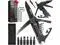 17 Different Tools Merging into One The multitool knife kit contains knife, saw, rope cutter, a screwdriver with 6 different heads, bottle opener, can opener, L-key for Allen and Torx screws T5, L-key for Phillips and flathead screws 1.5, ejection pin, fire starter, window breaker, whistle.
