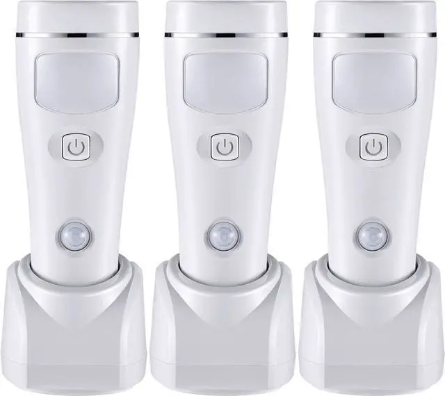 4 In 1 Function: rechargeable flashlights are 4 in 1 function; This light can be applied as LED motion sensor nightlight, emergency light, flashlight and rechargeable torch; Plug in the socket and you can use it as a night light; But if you just want to use it as a flashlight, you just need to turn on the button on the top of the light; It is especially handy for use during outdoor camping, nighttime events