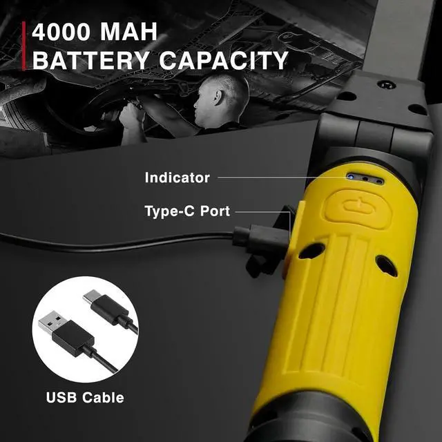 Rechargeable & Power IndicatorThe magnetic flashlight has a Type-C charging port to charge the built-in 4000mAh battery, and has the power indicator function to show the charging or full charging.