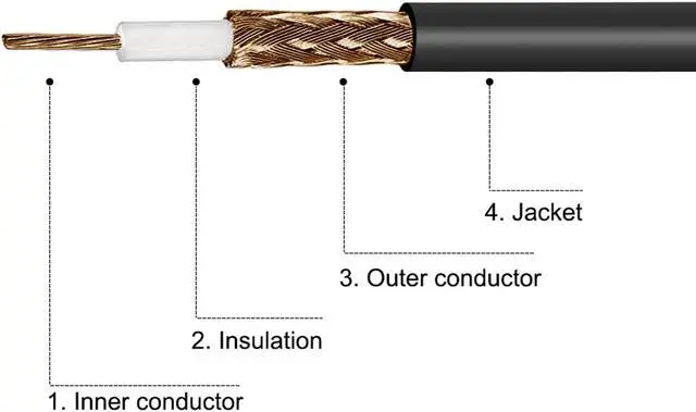 Convenient and cost-effective coaxial cable provides spare or replacement for different systems. Solid center conductor, dielectric insulation, and tinned copper braid shielding; durable and flexible PVC outer layer. Safe for use indoors or out.
