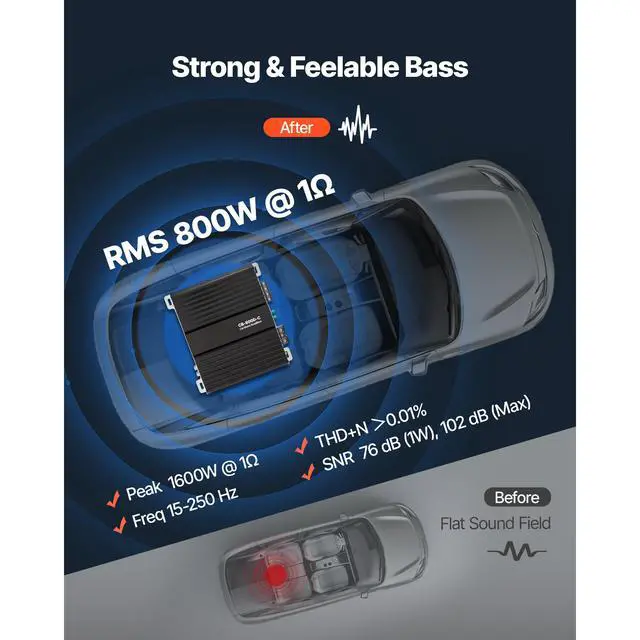 Signal-to-Noise Ratio (SNR): 76 dB (1W), 102 dB (Max)