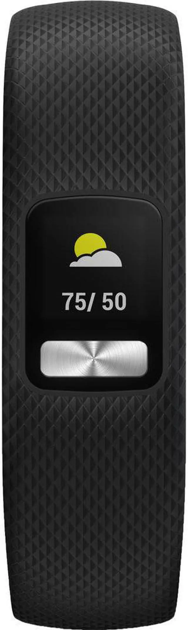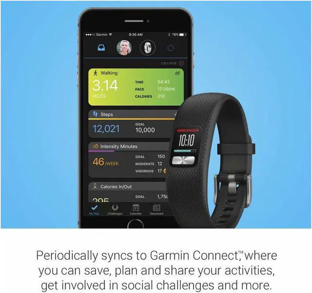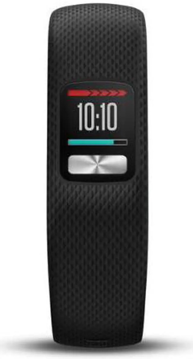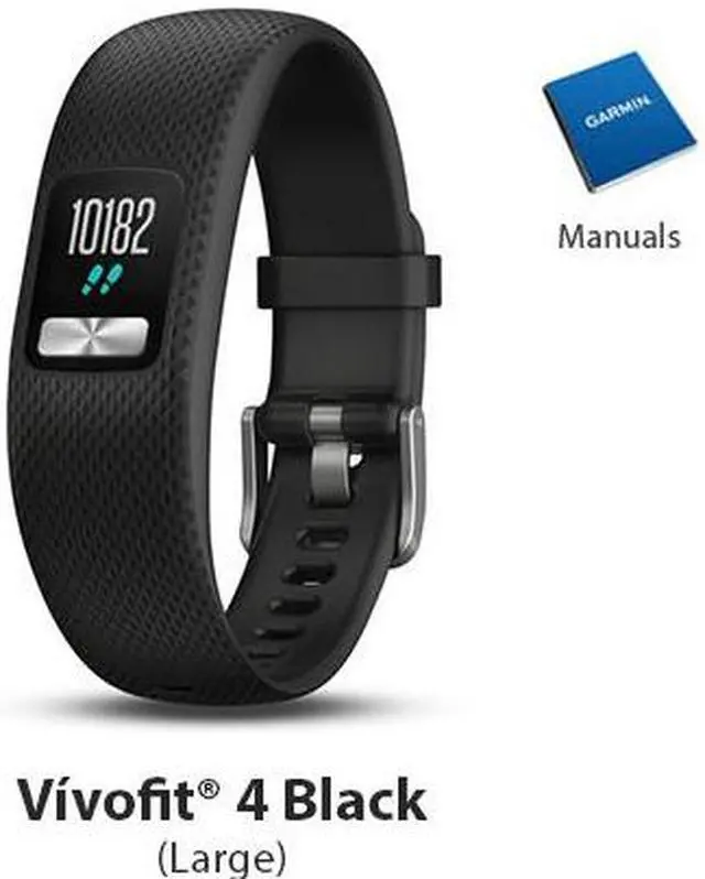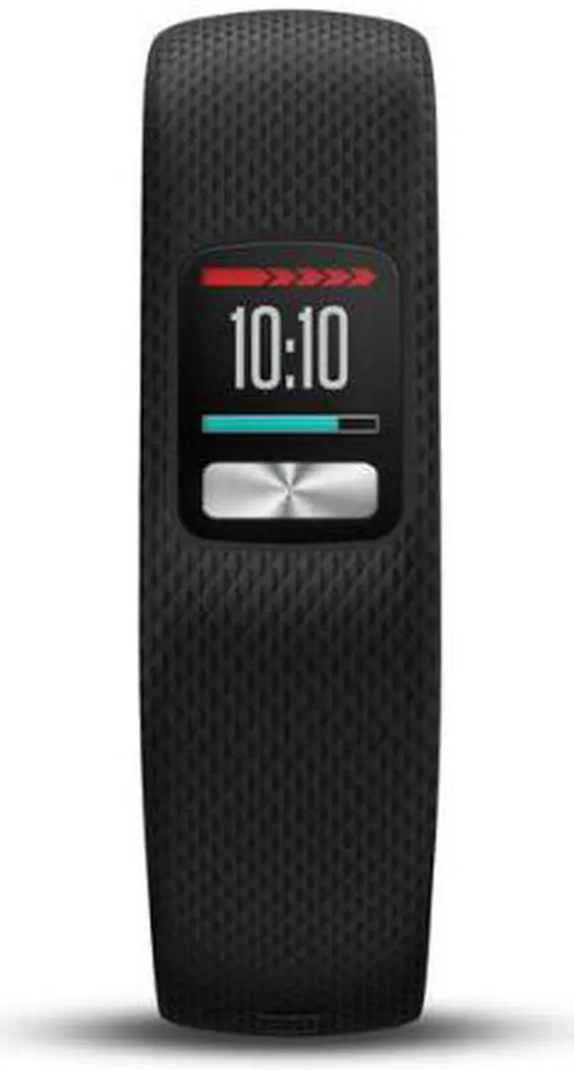 The Garmin VivoFit 4 is a fitness band that learns your activity level and assigns a personalized daily goal. It gets paired with heart rate monitor for fitness activities and displays steps, calories, distance and monitors sleep. The VivoFit 4 follows your progress 24/7 and it can stay on for more than a year without a battery change. It shows steps, calories, distance, intensity minutes and time of day on backlit display.