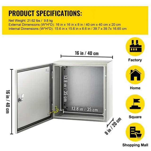 Outer Dimensions (H x W x D): 16'' x 16'' x 8'' / 40 x 40 x 20 cm