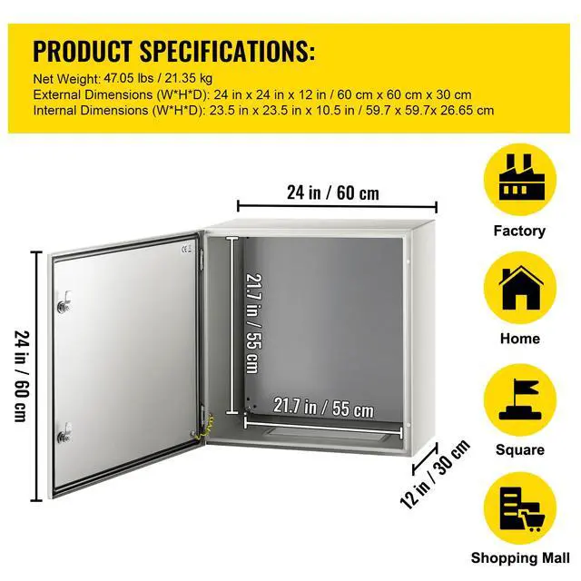 Outer Dimensions (H x W x D): 24'' x 24'' x 12'' / 60 x 60 x 30 cm