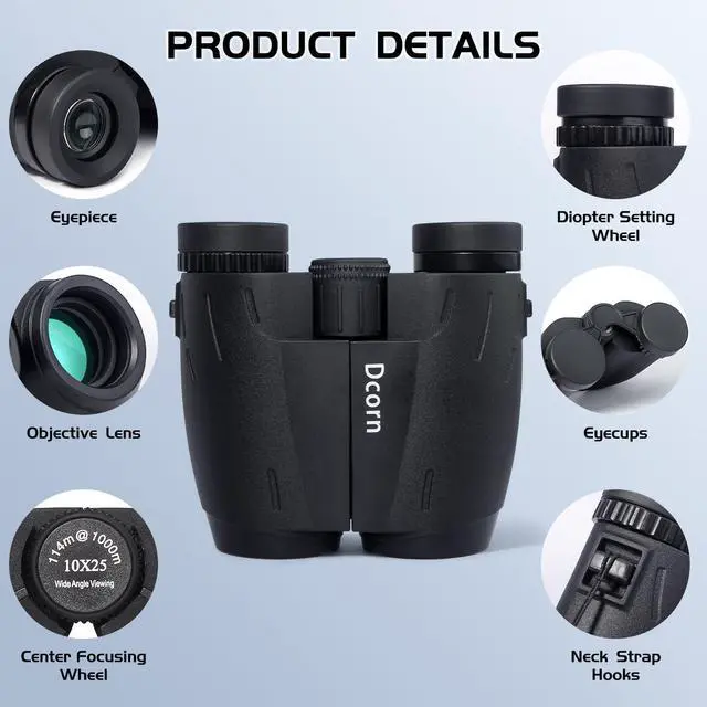 ENHANCED MAGNIFICATION AND WIDE FIELD OF VIEW: With 10x magnification and a wide 25mm objective lens, these compact binoculars offer powerful zoom and a wider field of view, allowing you to explore sharper details and enjoy a wider view without sacrificing clarity. Whether you're birdwatching or enjoying the outdoors, you'll enjoy an enhanced visual experience.