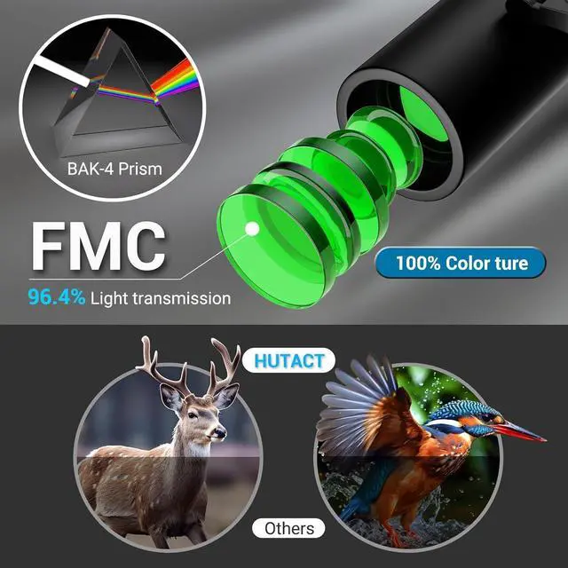 Good quality: BK4 Roof prism & FMC Green Multi-coated Optics offer more clear image.