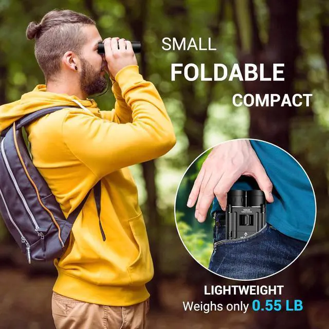 Portable binoculars - the weight only 0.25 kg, foldable design, mini pocket size, lightweight to carry with.