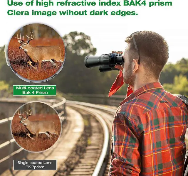 Amazing HD Vision High-index BAK4 prisms and fully multi-coated optics maximize light transmission and deliver excellent contrast and color fidelity, give you a brighter, clearer and razor-sharper viewing.