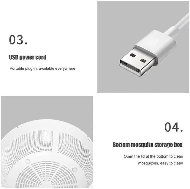 Protect your home with our Indoor Mosquito Trap Lamp, featuring a powerful 360° LED UV attraction, whisper-quiet fan suction, and easy USB power for cost-effective, eco-friendly pest control. This chemical-free mosquito repellent lamp includes a detachable collection chamber and portable handle, perfect indoors and on patios. Lightweight and safe, it delivers efficient mosquito elimination without noise, chemicals, or odors. Say goodbye to bug bites and hello to uninterrupted sleep and comfort.