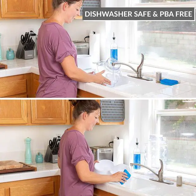 EASY TO CLEAN: (I) Water basin, lid, and reservoir easily separate for cleaning. (II) Water basin and lid are top rack dishwasher safe! (III) Hand wash water bottle with soap and warm water.